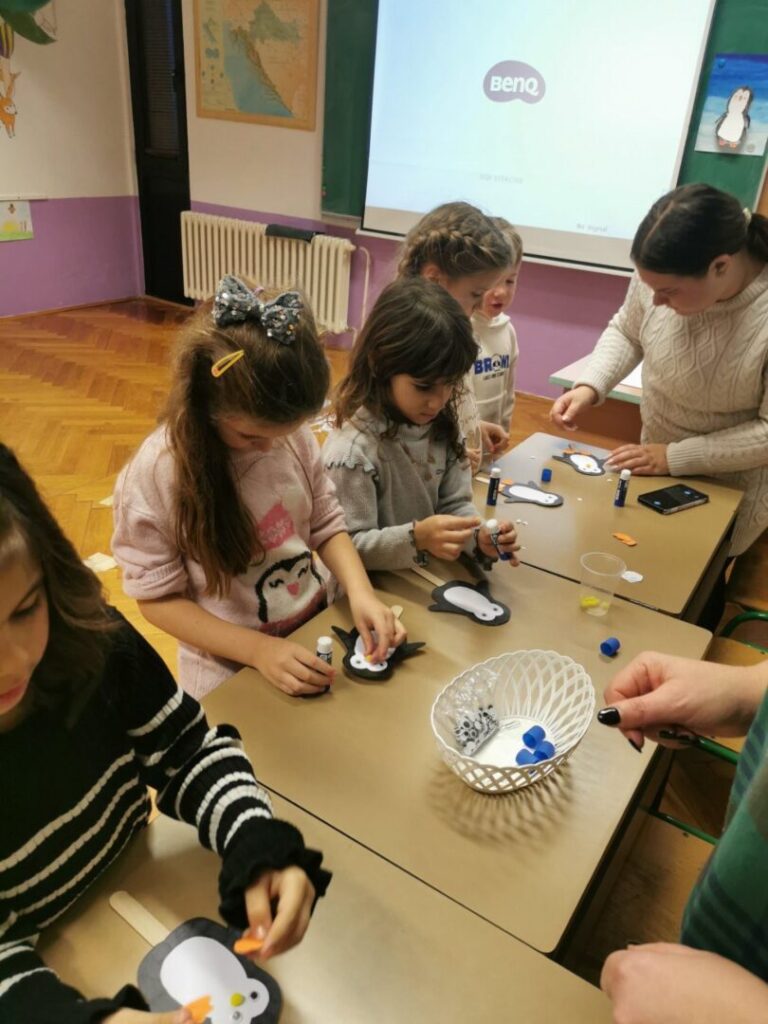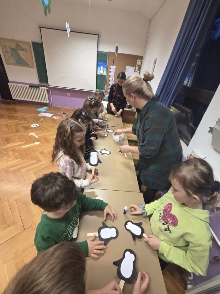 I bambini hanno partecipato al laboratorio scientifico con l’insegnante Tamara Beletić dove si sono cimentati in veri scienziati, con le insegnanti Ilenija Sirotić Jurišević, Ilenia Starić Tarandek e Irena Bartolić hanno partecipato a un laboratorio linguistico-creativo basato sulla storiella “Il pinguino freddoloso” e infine con l’insegnante di musica Laura Banić hanno cantato la canzoncina “Fra Martino”.